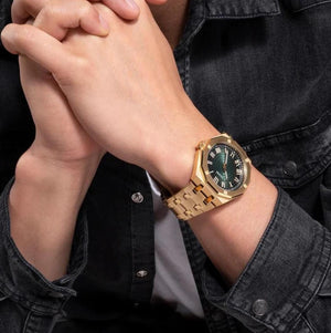 GUESS ASSET GOLD STAINLESS STEEL CHAIN GREEN DIAL