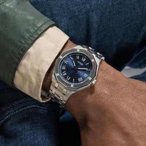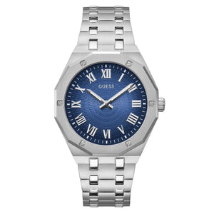 GUESS ASSET SILVER STAINLESS STEEL BLUE DIAL