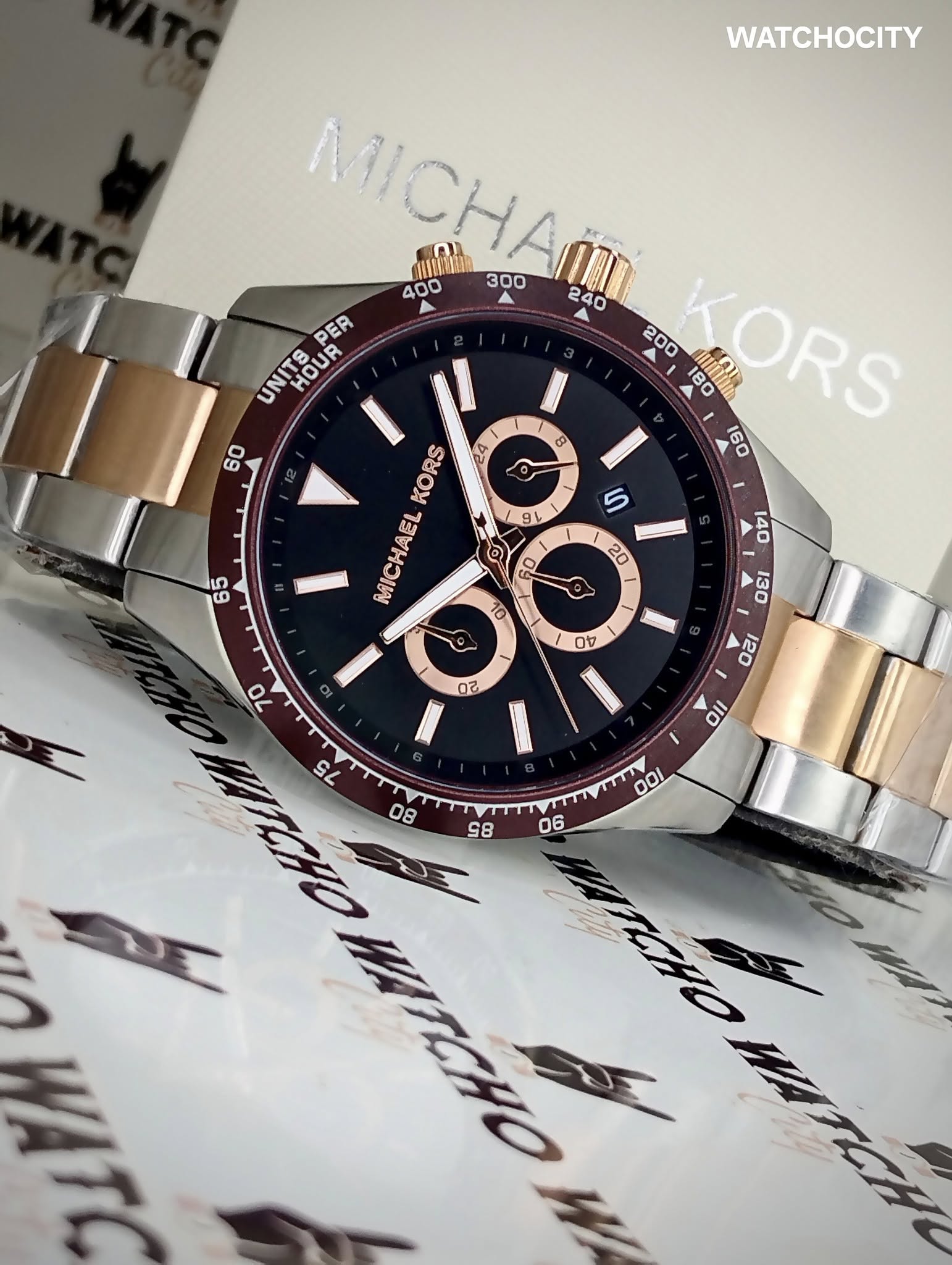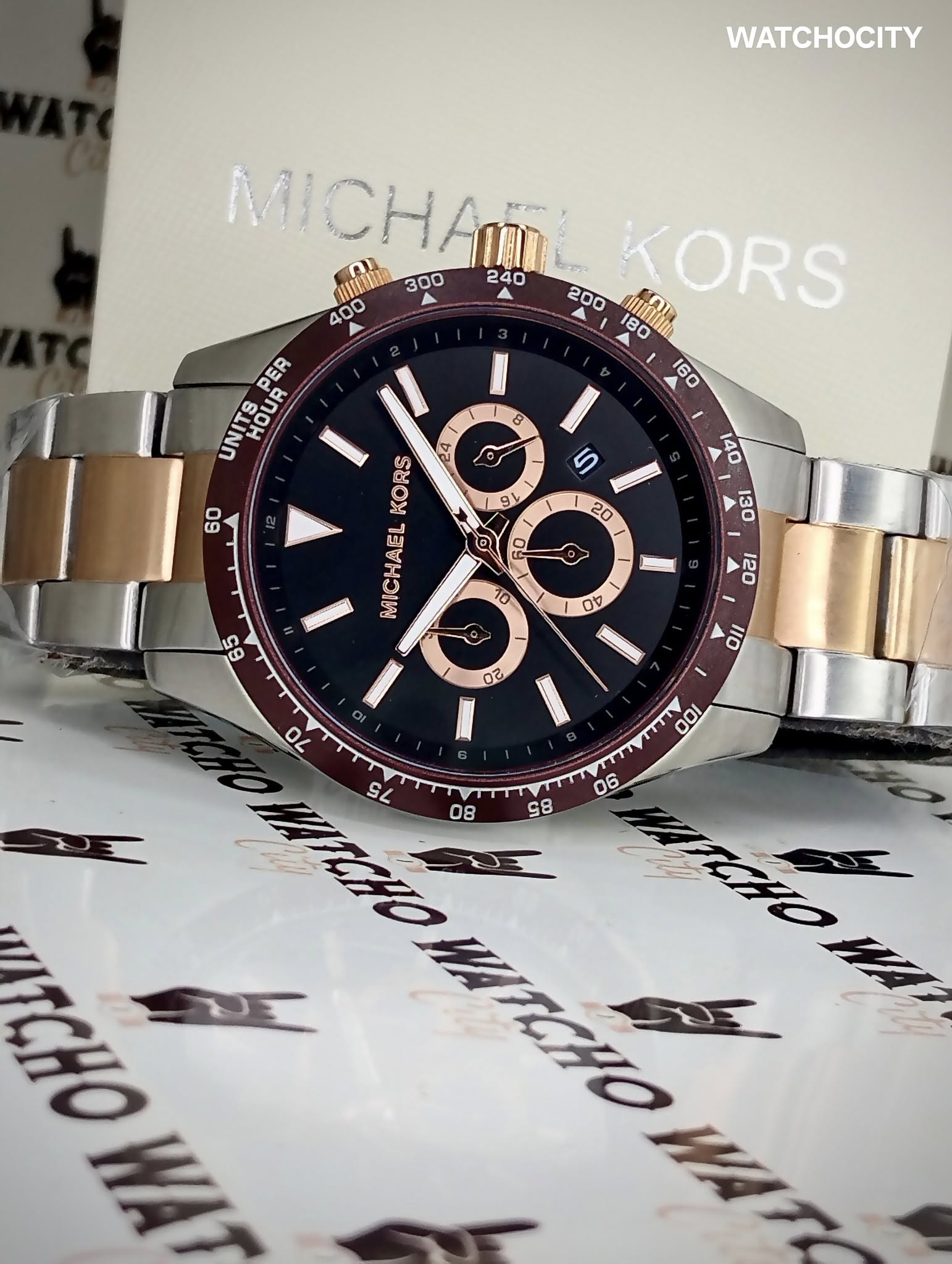 Description : Round item shape , Crystal mineral glass dial window material type , Analog display type , Push button deployment closure buckle clasp type , Stainless steel case material , Stainless steel band material , Bracelet band type , Solid case back , Men’s standard band length , Two-Tone band color , Black dial color , Silver case color , Pull / Push crown , Luminiscene hands rose-gold tone & indices numeral dial markers , Minute markers around the outer rim , Stainless steel bezel material , Stationary bezel , [24] Hour display function , [44]mm case diameter , [22]mm band width , [10]mm case thickness , Chronograph / Date / Hour / Minute / Second , Date calendar display between [4 & 5 o’clock in position] , Water resistance [10ATM] , Water resistant to [100METERS] [330FEET] in general , suitable for short periods of recreational swimming , but not diving or snorkeling .