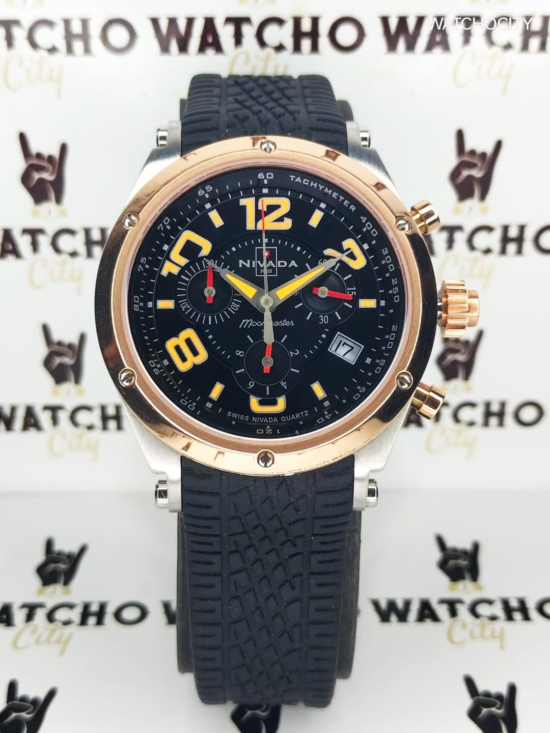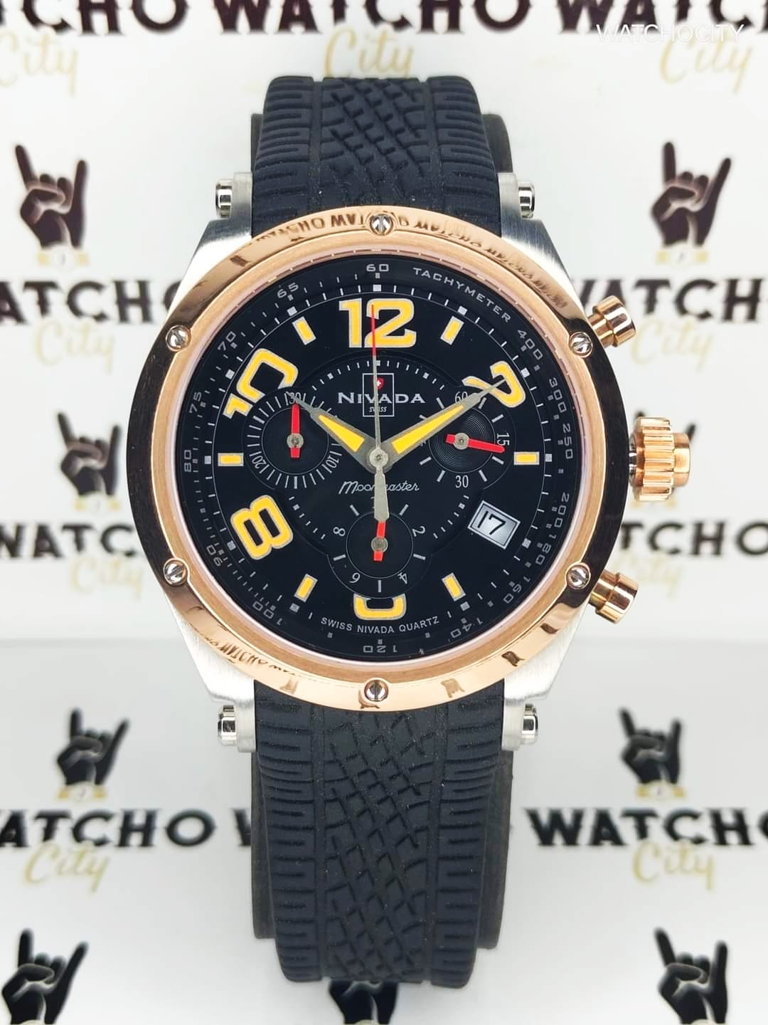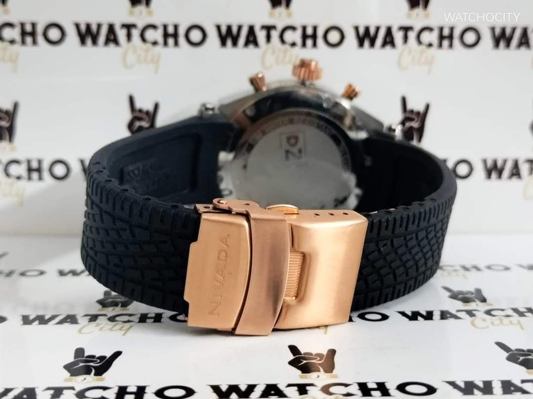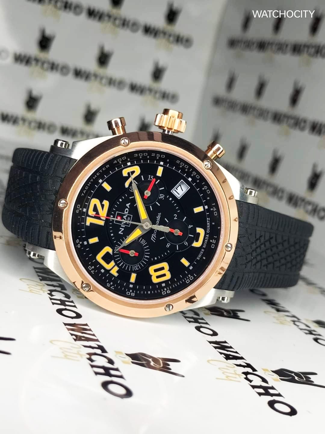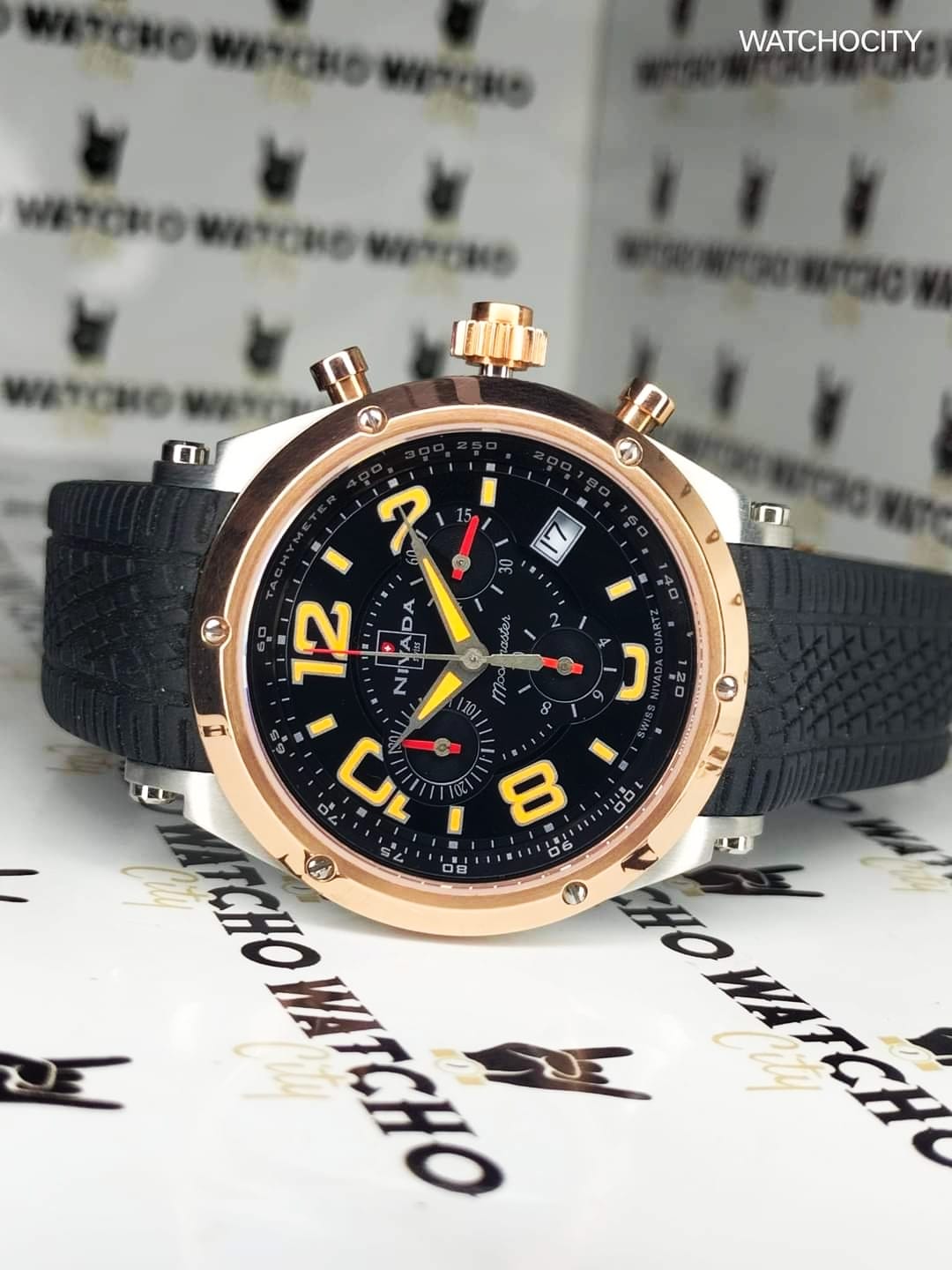 Description : Round item shape , Sapphire mineral glass dial window material type , Chorograph display type , Pin closure buckle clasp type , Stainless steel case material , Silicone band material , Rubber strap band type , Solid case back , Men’s standard band length , Black band color , Black dial color , Pull / Push crown , Luminiscene hands rose gold tone & numerals dial markers , Minute markers around the outer rim , Stainless steel bezel material , Stationary bezel , Tachymeter inner scale [24] Hour display function , [42]mm case diameter , [20]mm band width , [15]mm case thickness , Chronograph / Date / Hour / Minute / Second , Date calendar display between [4 o’clock in position] , Water resistance [5ATM] , Water resistant to [50METERS] [165FEET] in general , suitable for short periods of recreational swimming , but not diving or snorkeling .