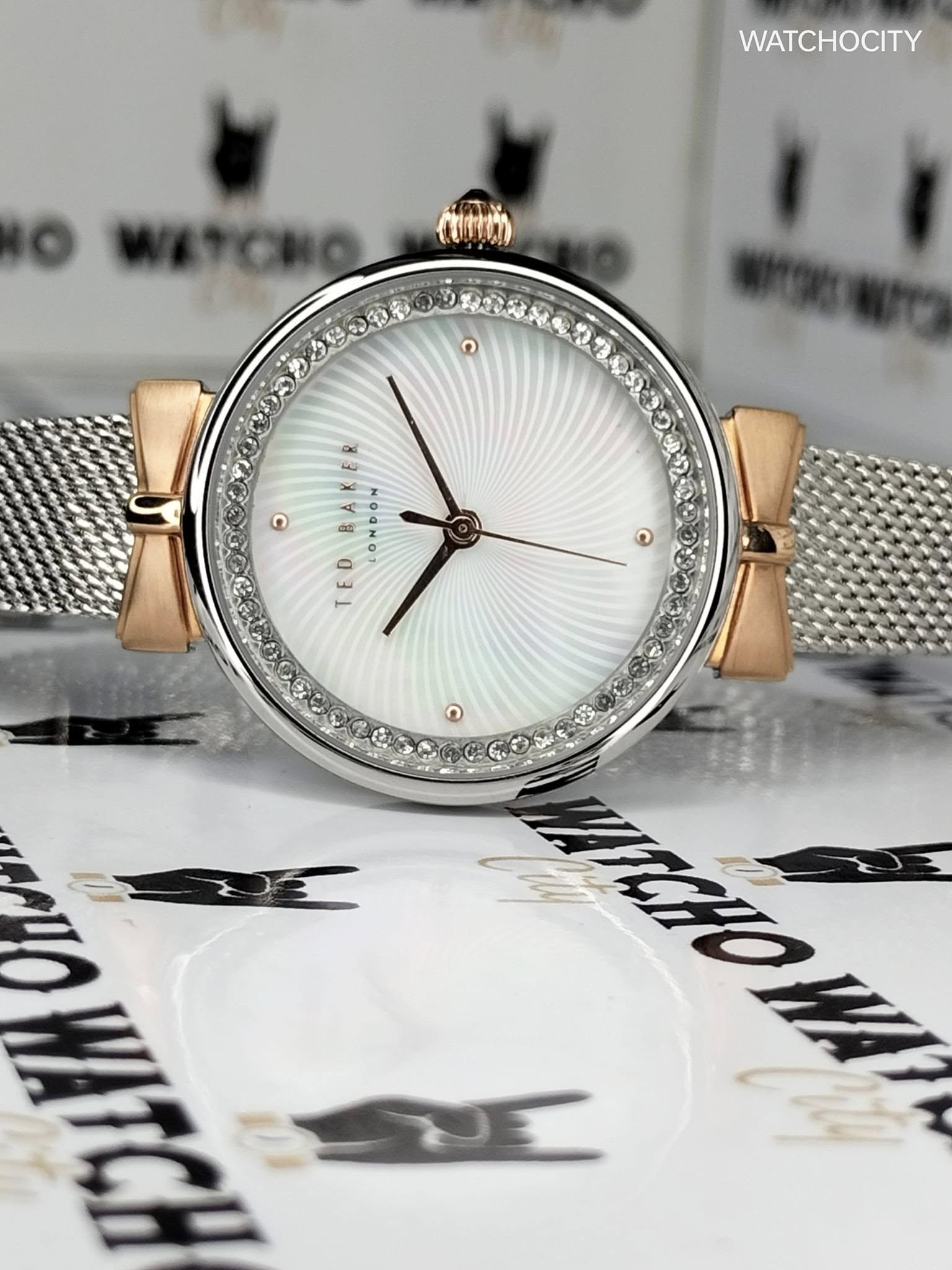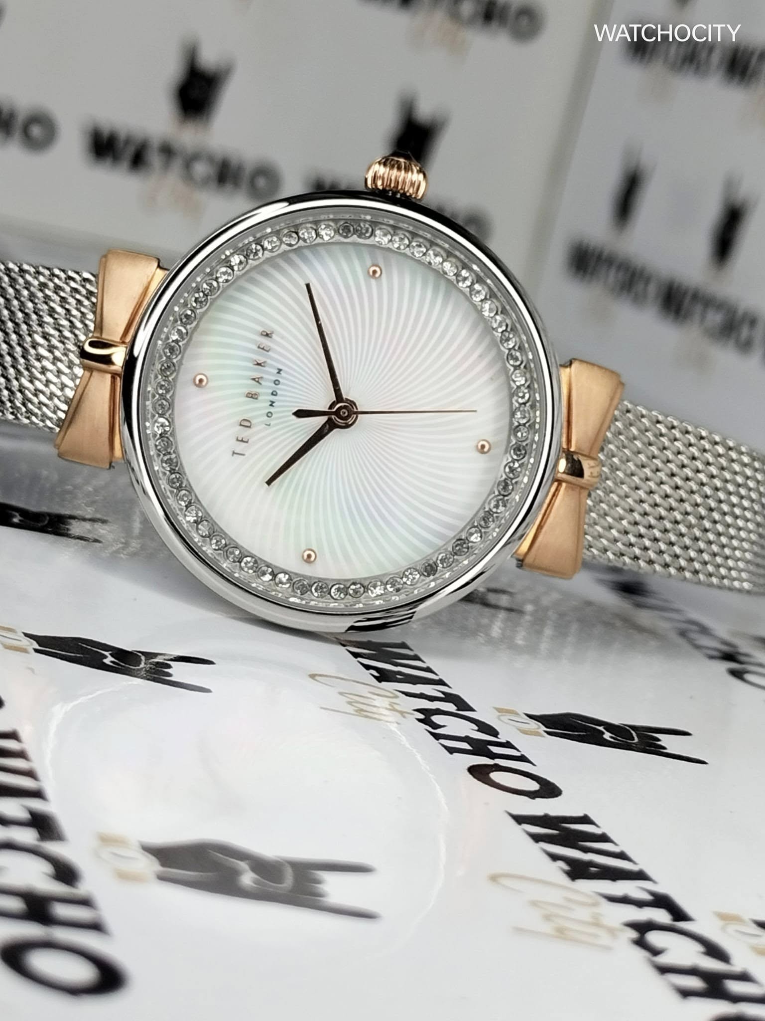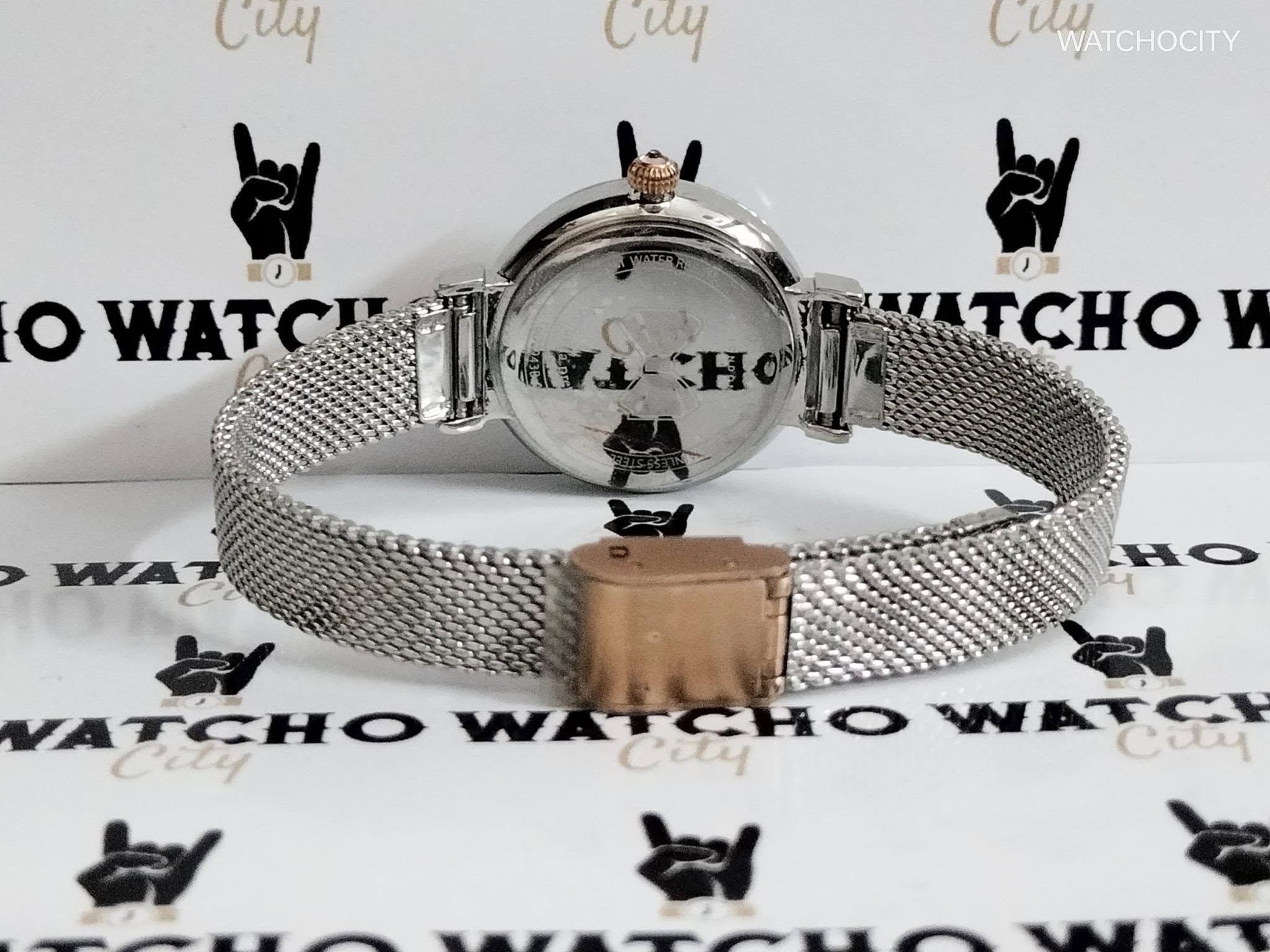 Description : Circle item shape , Crystal mineral dial window material type , Analog display type , Adjustable buckle clasp type , Stainless steel band material , Bracelet band type , Solid case back , Stainless steel case material , Women’s standard band length , Silver band color , MOP dial color , Silver case color , Pull / Push crown , Luminiscence hands & diamond dial markers , Minute markers around the outer rim , [24] Hour display function , Stainless steel bezel material , Stationary bezel function , [30]mm case diameter , [9]mm case thickness , [18]mm band width , Jessica / Analogue / Hour / Minute / Second , Water resistance [3ATM] , Water resistant to [30METERS] [100FEET] in general : withstands splashes or brief immersion in water , but not suitable for swimming or bathing .