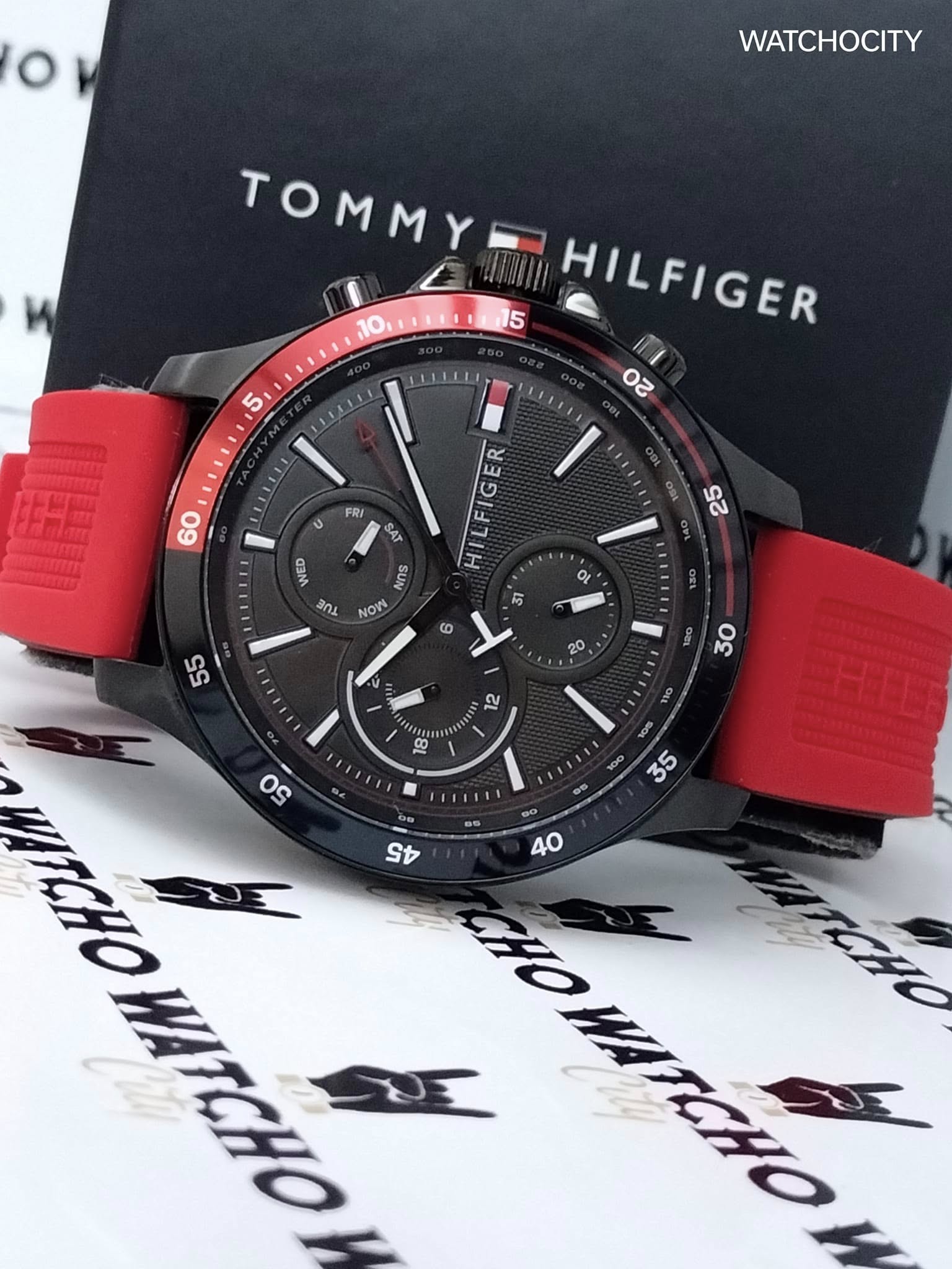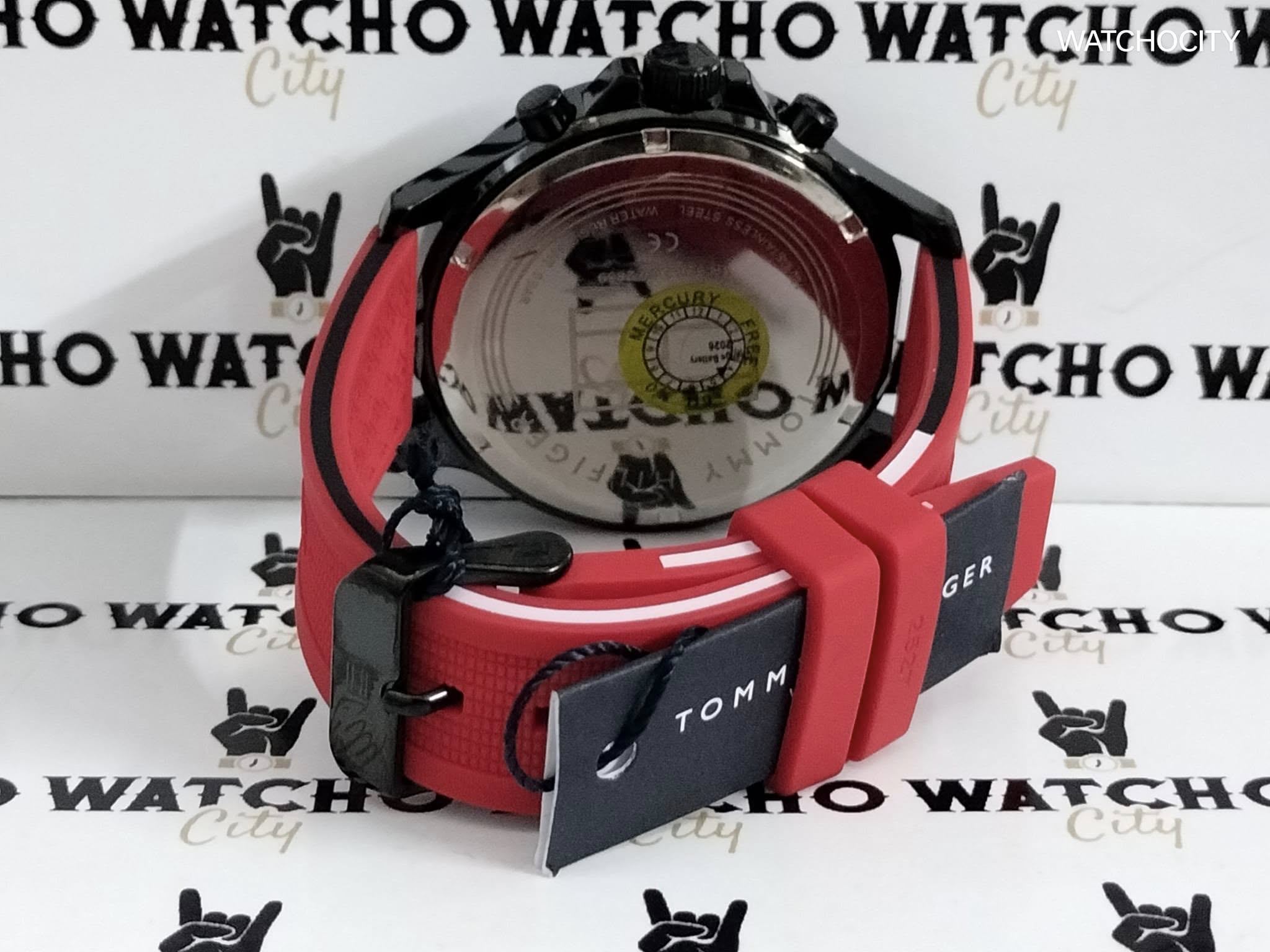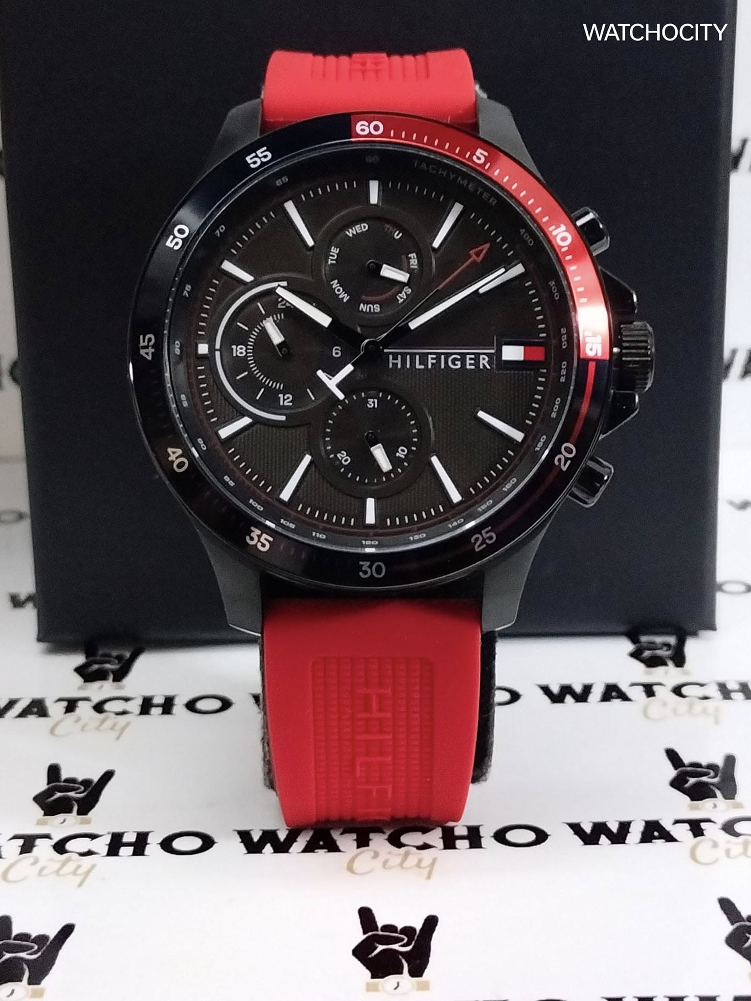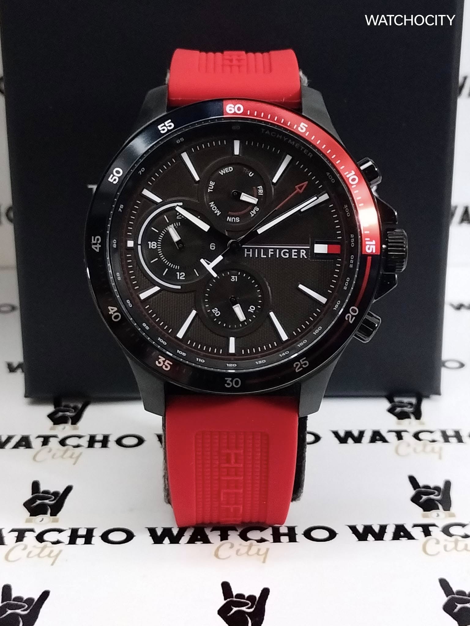 Description : Round item shape , Crystal mineral dial window material type , Analogue display type , Pin closure buckle clasp type , Silicone band material , Rubber strap band type , Solid screw case back , IP stainless steel case material , Men’s standard band length , Red band color , Black dial color , Black case color , Pull / Push crown , Luminescent black baton index & small arabic numeral dial markers , Minute markers around the outer rim , Stainless steel bezel material , Tachymeter inner scale , Coke bezel , Fix bezel , [45]mm case diameter , [11]mm case thickness , [22]mm band width , Cosmograph / Date / Hour / Minute / Second , Date calendar indicate between [6 o’clock in position] , Water resistance [5ATM] , Water resistant to [50METERS] [165FEET] in general : withstands splashes or brief immersion in water , but not suitable for swimming or bathing .